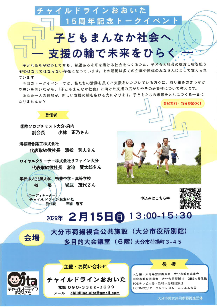 チャイルドラインおおいた15周年記念トークイベントのお知らせ NEW