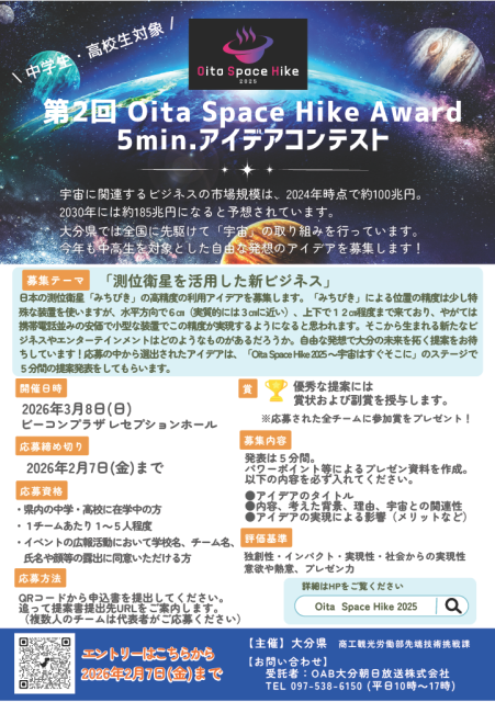 宇宙教育イベント Oita Space Hike 2025 が 3/8(日)に別府・ビーコンプラザで開催されます!